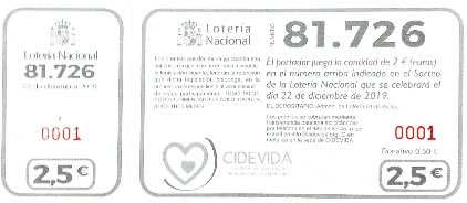 En cada papeleta se juega 2 € y se hace un donativo de 0,5 €.