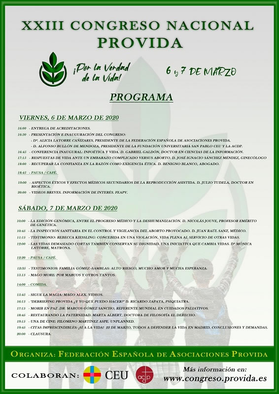 En unos momentos tan importantes para la cultura de la Vida os animamos especialmente a asistir.